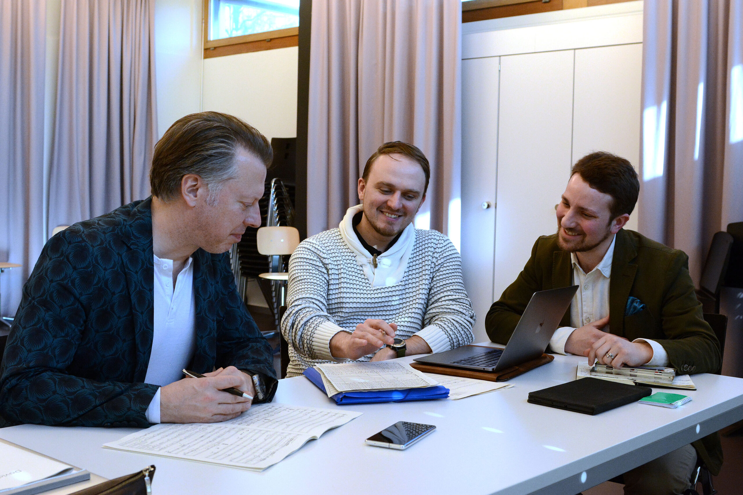 Die Begleitung des Kompositionsprozesses durch David Philip Hefti sei gar nicht so konkret gewesen, erinnert sich Gaudenz Werner Wigger. Es sei einfach immer wieder gut gewesen, wenn jemand anders – zudem jemand mit riesiger Erfahrung – sich seine Arbeit angeschaut habe. «Es kamen dann Ideen von Philip, aber auch von Andrzej, die mir selbst nicht gekommen wären, weil ich zu fest in meinen Entwürfen steckte; ich konnte sie dann teilweise übernehmen. Das Tolle an diesem Austausch war, dass Andrzej und ich sehr frei waren, dass Philip uns überhaupt nichts vorgeschrieben hat.» Sie hätten mehr Anregungen denn konkrete Ideen erhalten, konkret seien lediglich Tipps etwa zur Instrumentierung gewesen.